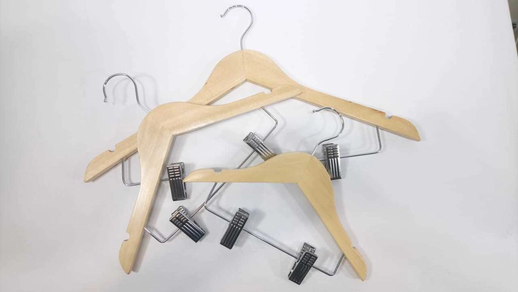 Perchas de Madera Barnizado y Lustrado con Broches para Niños